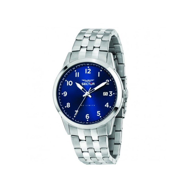 Orologio da polso uomo Sector della collezione 660 con movimento al quarzo Miyota 2315 e funzioni di solo tempo con data. Cassa in acciaio inossidabile di forma rotonda color argento del diametro di 41 mm e spessore di 10,20 mm. Quadrante analogico blu con indici a numeri arabi, logo nella parte alta e datario a ore 3, vetro minerale. Cinturino in acciaio inossidabile color argento con chiusura deployante con pulsanti, resistente all'acqua 5 ATM: resistente agli spruzzi d'acqua ma non sotto pressione.